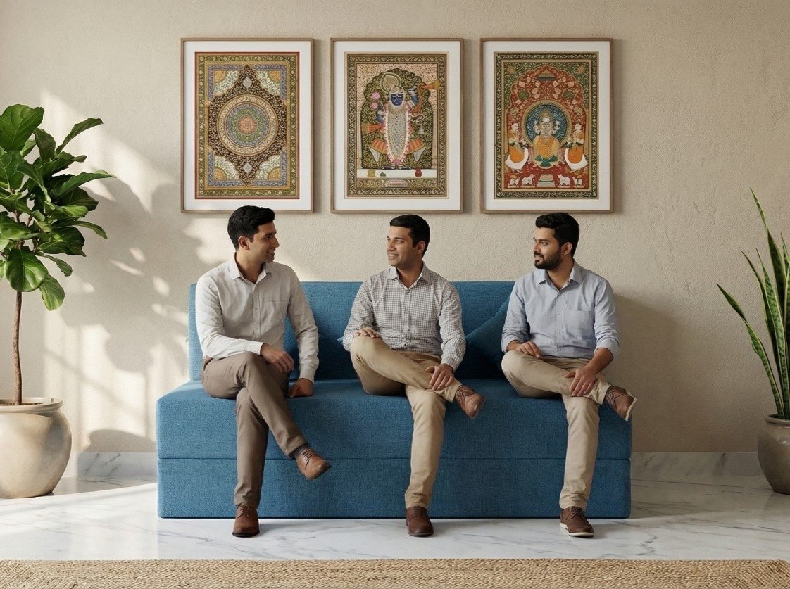 Apart from meditation, ottoman mode can also be used as a footrest, extra seating, or a casual surface for books or trays. Its versatility makes it especially useful in compact homes where furniture must serve multiple purposes without occupying additional space, making it a multi-purpose ottoman sofa, meditation seating furniture, floor seating sofa, compact space-saving furniture solution.