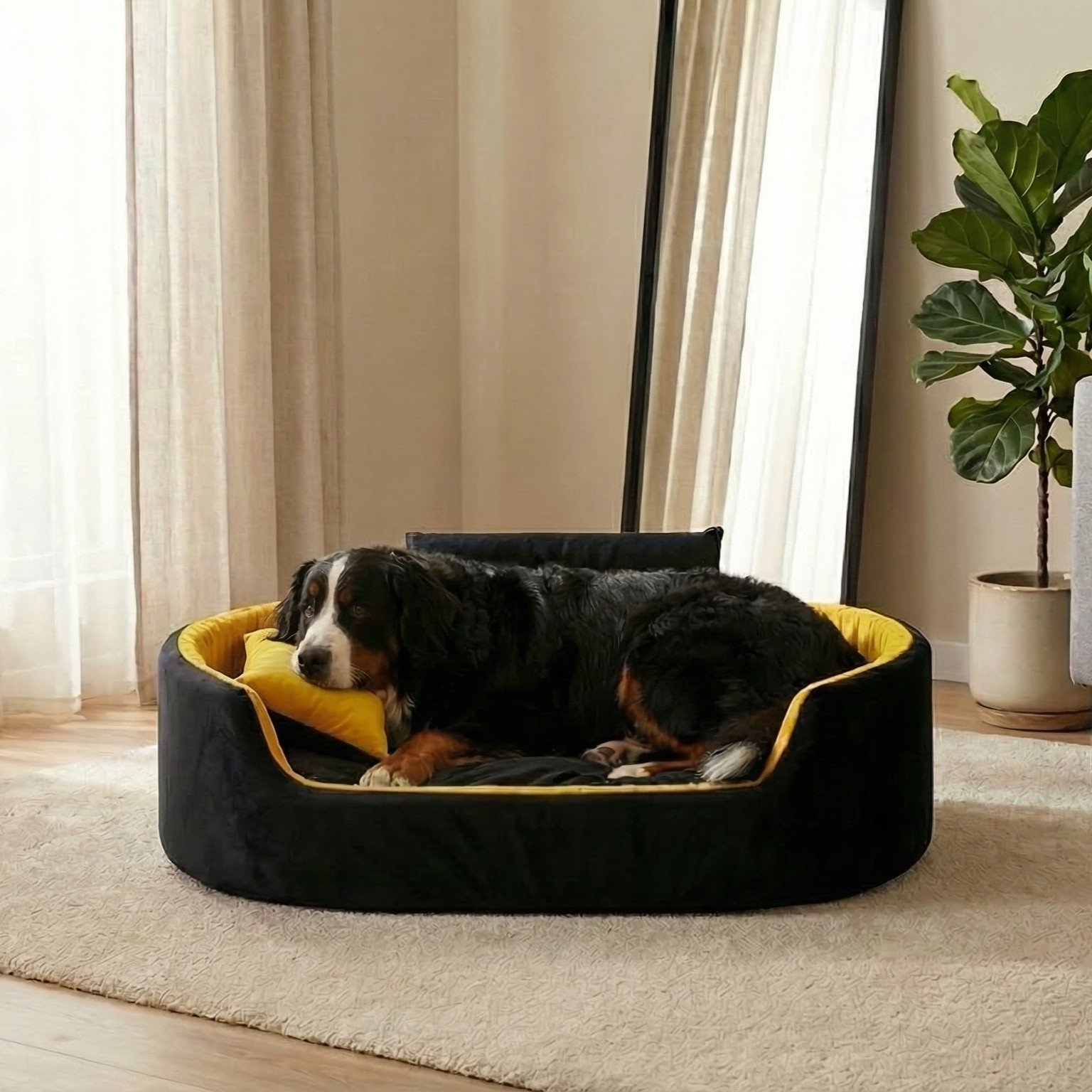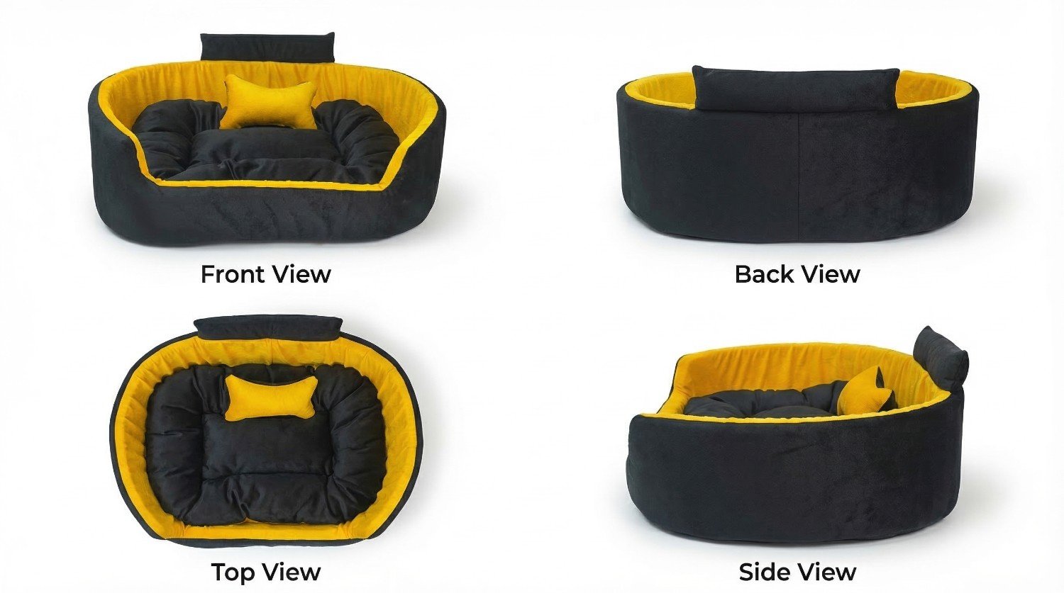 Premium Orthopedic Dog Bed with Pillow & Collar Design – Black & Yellow | Comfortable Pet Bed with Supportive Raised Borders for Small, Medium & Large Dog