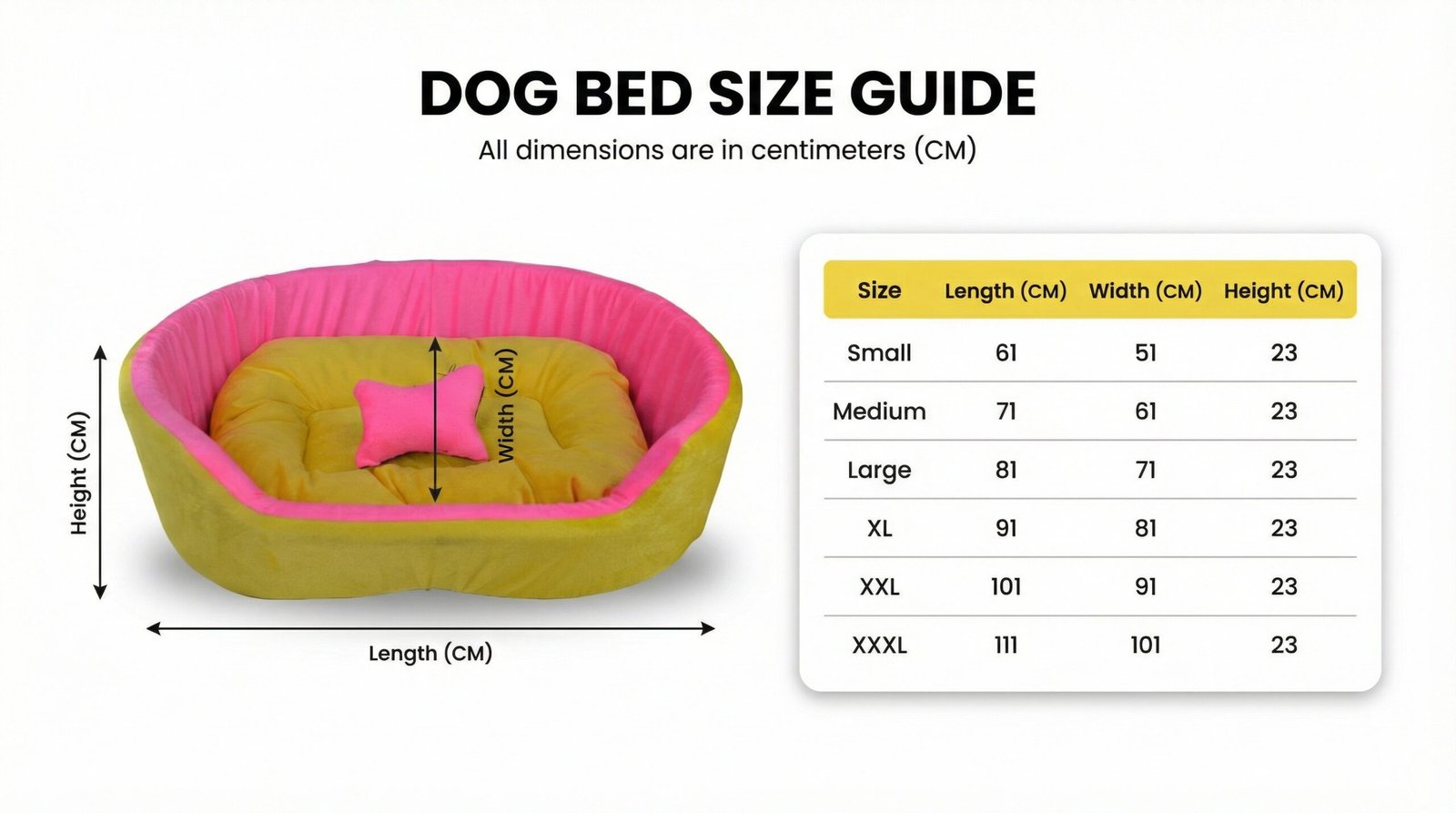 Premium Orthopedic Dog Bed With Pillow Yellow Baby Pink Color – Soft Comfortable Pet Bed for Large, Medium & Small Dogs