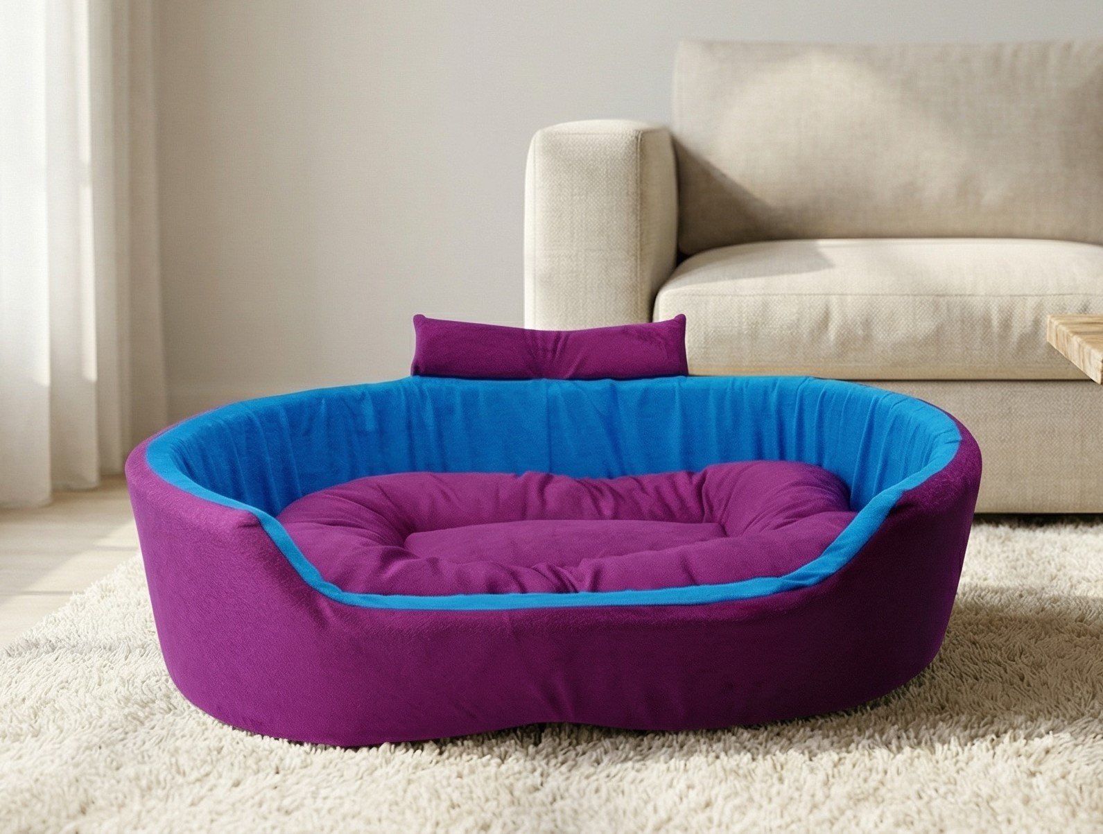 Soft Orthopedic Dog Bed with Collar – Premium Comfortable Pet Bed for Small, Medium & Large Dogs (Purple & Skyblue)